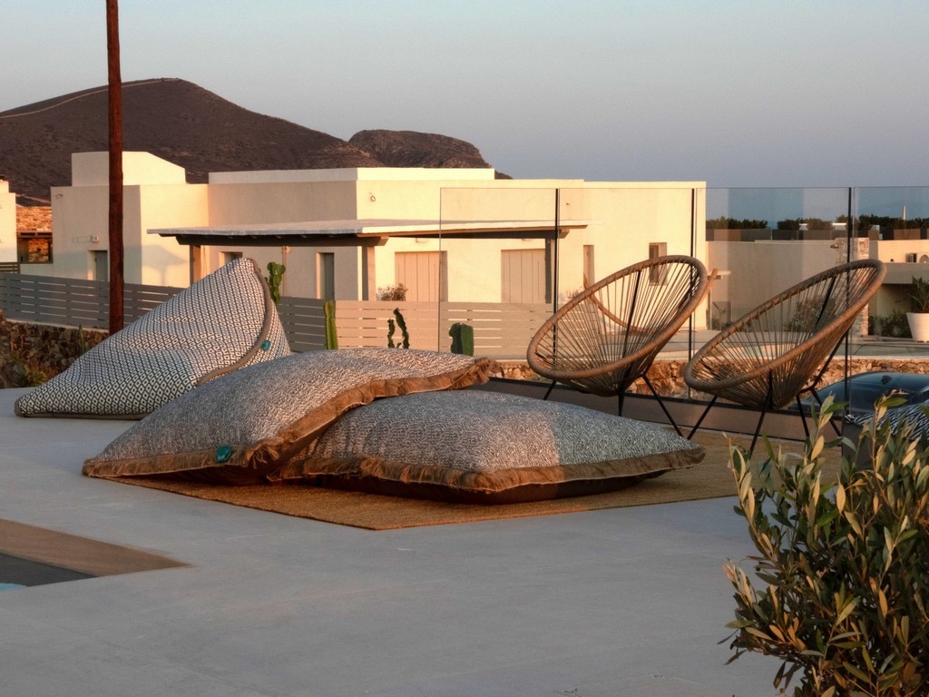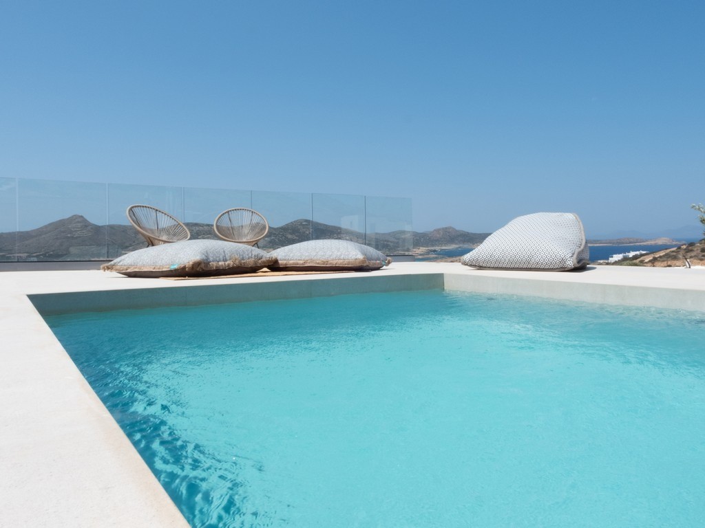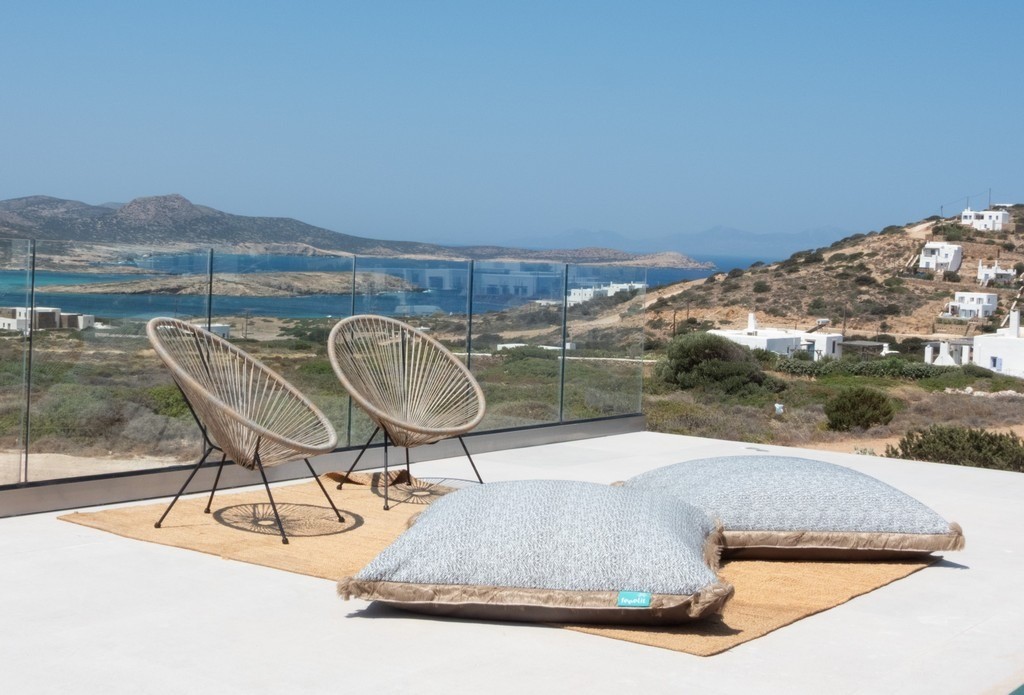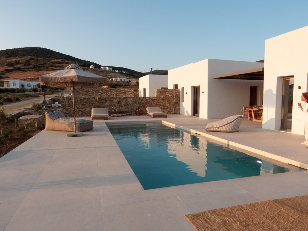 Step outside Villa Dilion to discover a magnificent outdoor setting where the beauty of Antiparos unfolds around you. The villa’s elevated position grants guests breathtaking panoramic views, encompassing the sparkling Aegean Sea and the majestic archaeological island of Despotiko. Central to this vista is the calm, crystalline private pool, offering a refreshing sanctuary under the Greek sun. Surrounding the pool are sun loungers and comfortable seating areas, inviting you to relax and soak up the tranquil atmosphere, making every moment an opportunity for pure, luxurious escape.