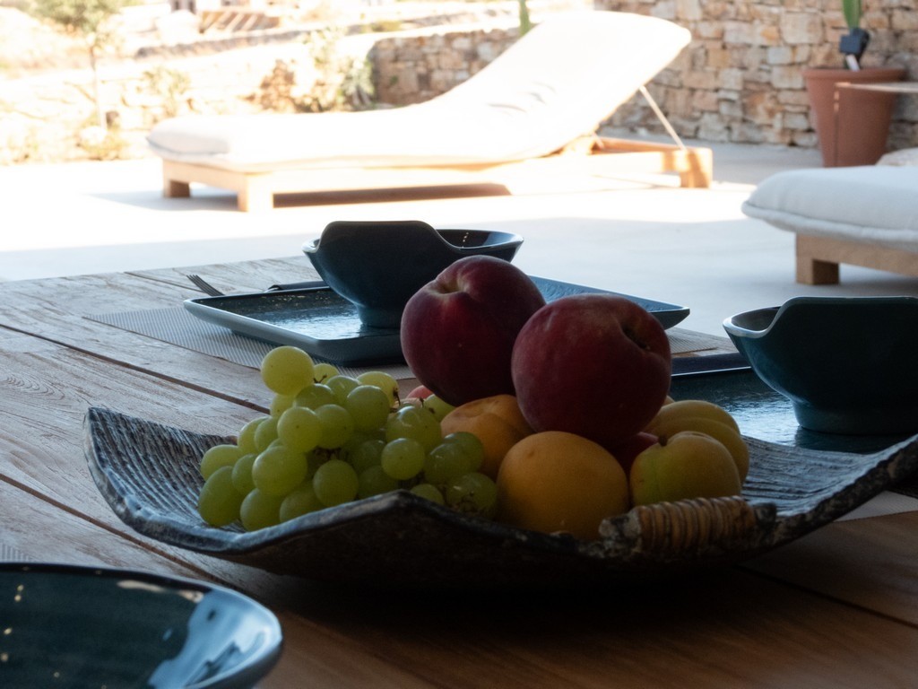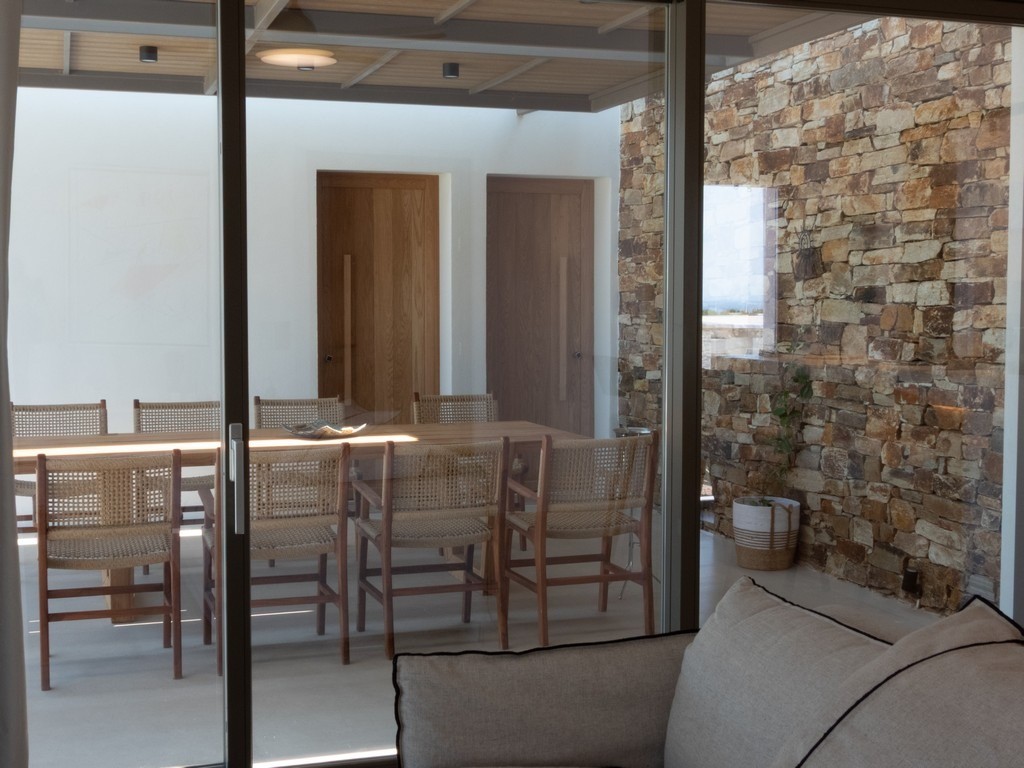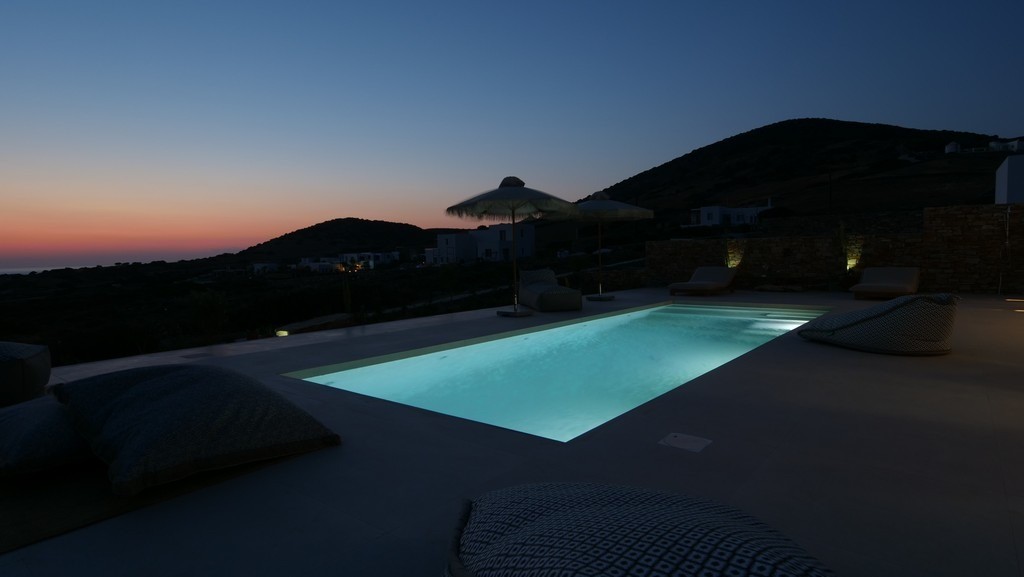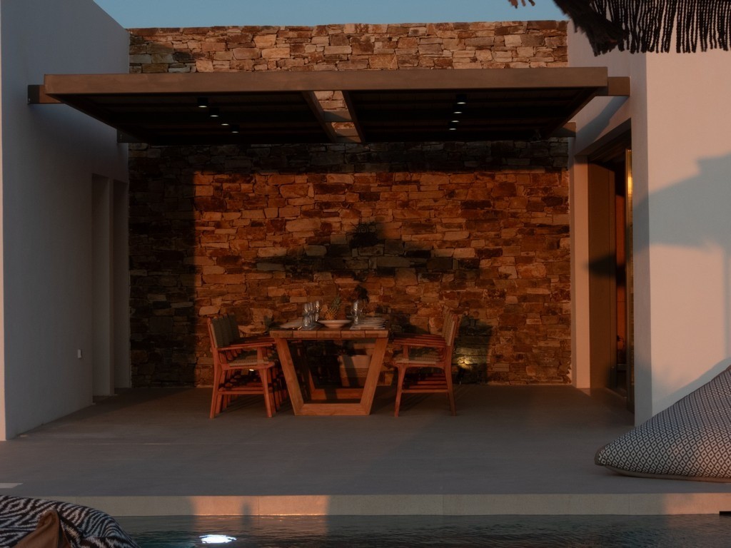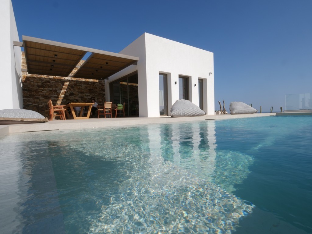 Step outside Villa Dilion to discover a magnificent outdoor setting where the beauty of Antiparos unfolds around you. The villa’s elevated position grants guests breathtaking panoramic views, encompassing the sparkling Aegean Sea and the majestic archaeological island of Despotiko. Central to this vista is the calm, crystalline private pool, offering a refreshing sanctuary under the Greek sun. Surrounding the pool are sun loungers and comfortable seating areas, inviting you to relax and soak up the tranquil atmosphere, making every moment an opportunity for pure, luxurious escape.